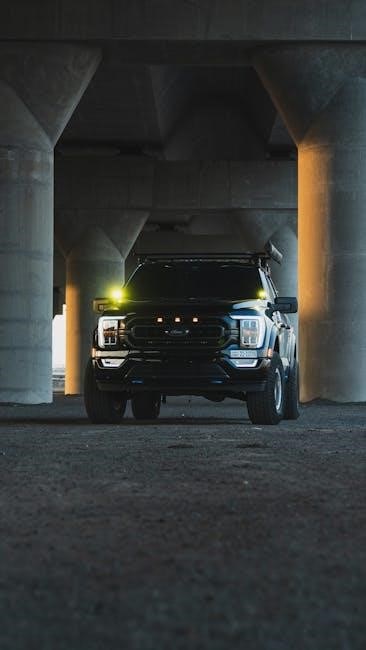 The 2023 F-150 owner’s manual provides initial diagnostic guidance for common issues, helping owners identify potential problems before seeking professional help. It outlines how to interpret warning lights on the dashboard, offering explanations for each symbol’s meaning.